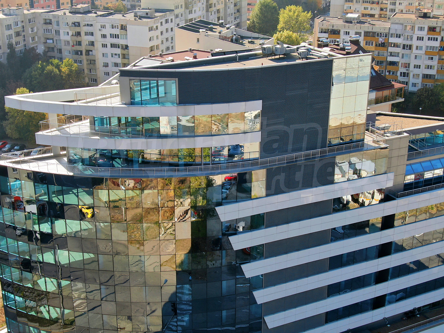 Благодаря оригинальному дизайну, на всех высоких этажах предусмотрены террасы, с которых открывается панорамный вид на город, а также на живописные горы, которые его окружают.