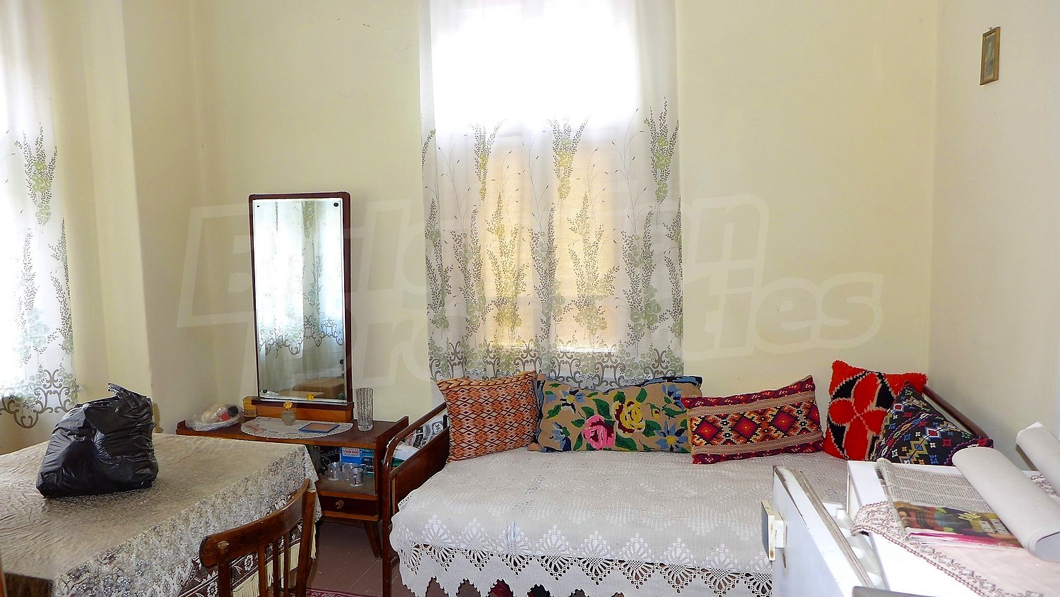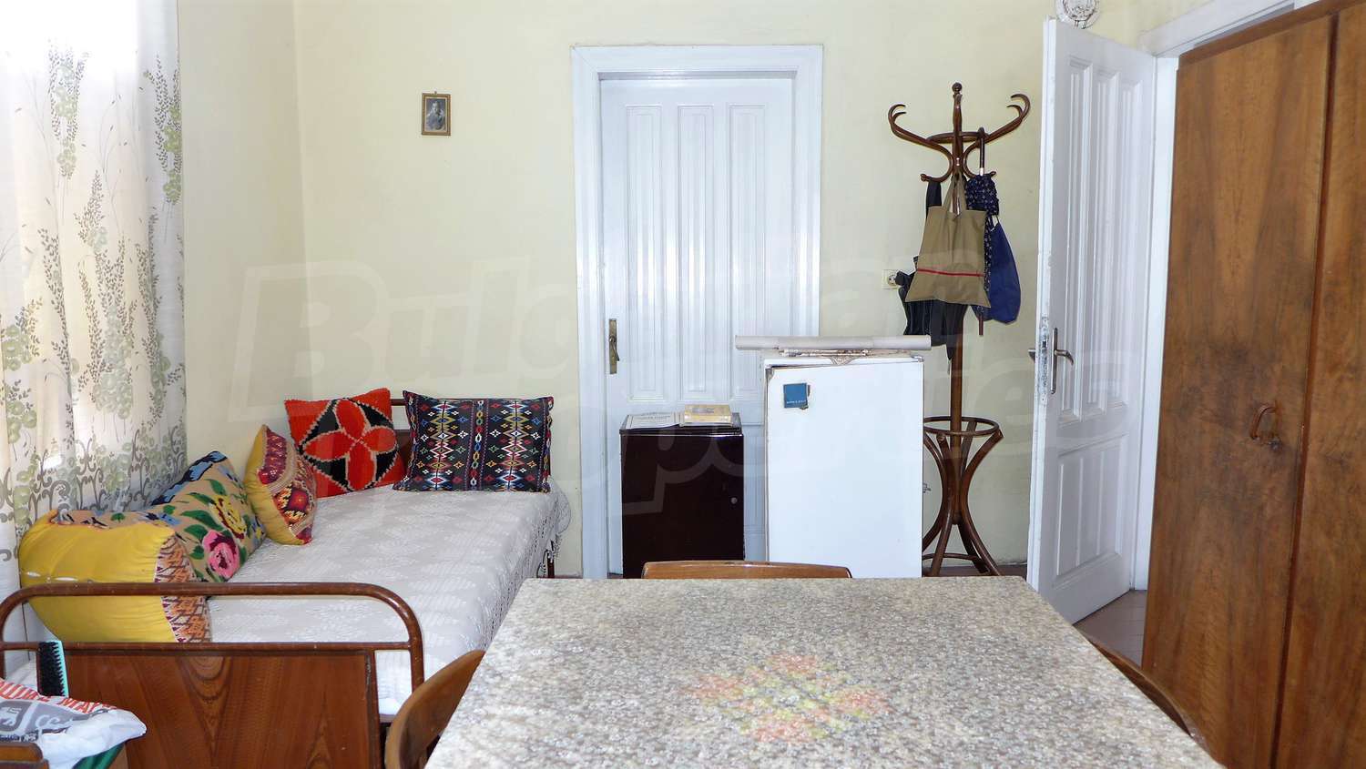 Мы представляем вашему вниманию дом, расположенный в центральной части небольшого городка, расположенного в центральной части Болгарии с застроенной площадью 86 кв.м и общей застроенной площадью 200 кв.м. с видом на юг, восток, запад и двор 457 кв. Жилая площадь распределена между подвалом, который включает в себя несколько помещений используемых как склад, жилой этаж с два отдельных входа, ведущих к две прихожих соединенными коридором, гостиной, кухня со столовой, две спальни, ванная комната с туалетом. Внутренняя лестница ведет на второй этаж, который представляет большая мансарда. Имущество предлагается со следующей степенью завершенности: деревянные оконные рамы, массивные стены из камня и кирпича, деревянным полом, подключен к системам электроснабжения, водоснабжения и канализации города. Собственность граничит с двумя улицами, к одна из которых есть вход к парковку во дворе.