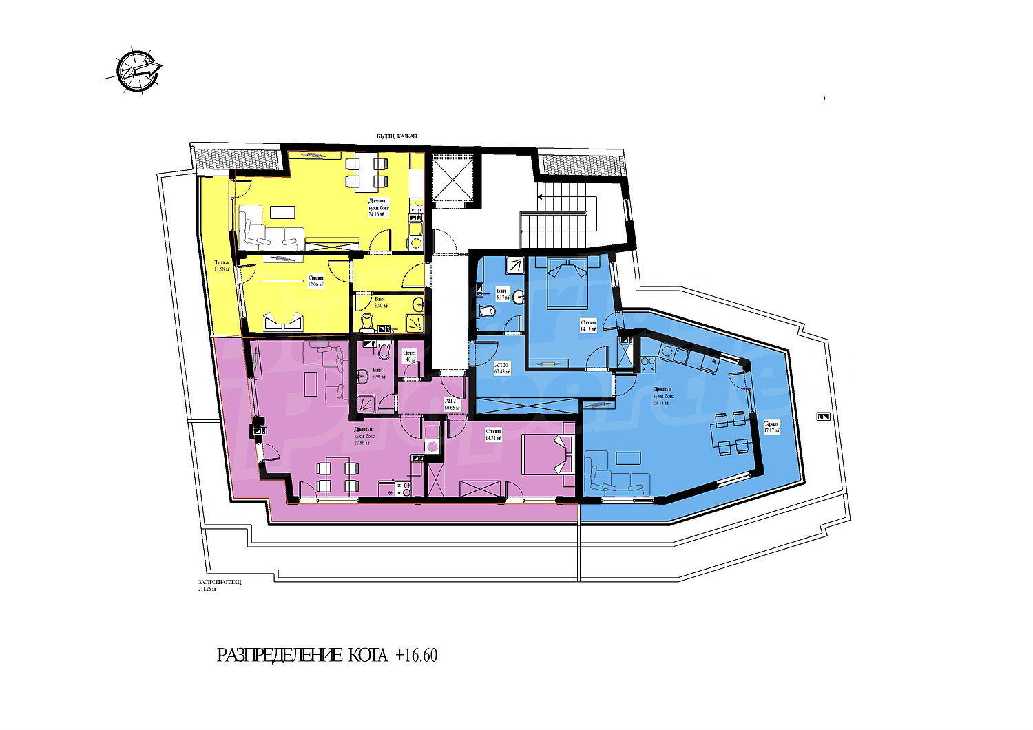 Квартира площадью 79.81 кв.м. Предлагаемая недвижимость построена в 2020. Газовая система отопления. Армированная входная дверь, внешняя изоляция, окна пвх и тройной стеклопакет имеются в предлагаемой недвижимости. Из основных коммуникаций обеспечены электричество, вода и центральная канализация. Балконы, ванная комната с туалетом, лифт, заасфальтированная дорога, интернет, кабельное телевидение и телефон имеются в наличии среди прочих перечисленных характеристик предлагаемого объекта, что обеспечит дополнительные удобства для пользования. Виды на населенный пункт и виды на горы открываются с недвижимости, раскрывая часть красот живописной Болгарии.