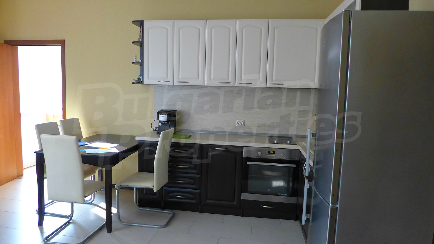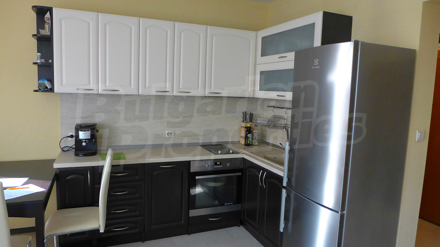 Трехкомнатная квартира площадью 125 кв. метров. Предлагаемая недвижимость построена в 2008. Газовая система отопления. Ламинированный пол, межкомнатные двери, окна пвх, покрашенные стены и терракотовый пол имеются в предлагаемой недвижимости. Недвижимость включает следующую мебель и оборудование: встроенная кухня, духовка, мебель, оборудованная ванная комната и холодильник. Из основных коммуникаций обеспечены отопление на газу, электричество, вода и канализация. Ванная комната с туалетом, парковка вне дороги, подвал, терраса и туалет имеются в наличии среди прочих указанных характеристик предлагаемого объекта, что обеспечит дополнительные удобства для пользования. Виды на населенный пункт и виды на горы открываются с недвижимости, раскрывая часть красот живописной Болгарии.