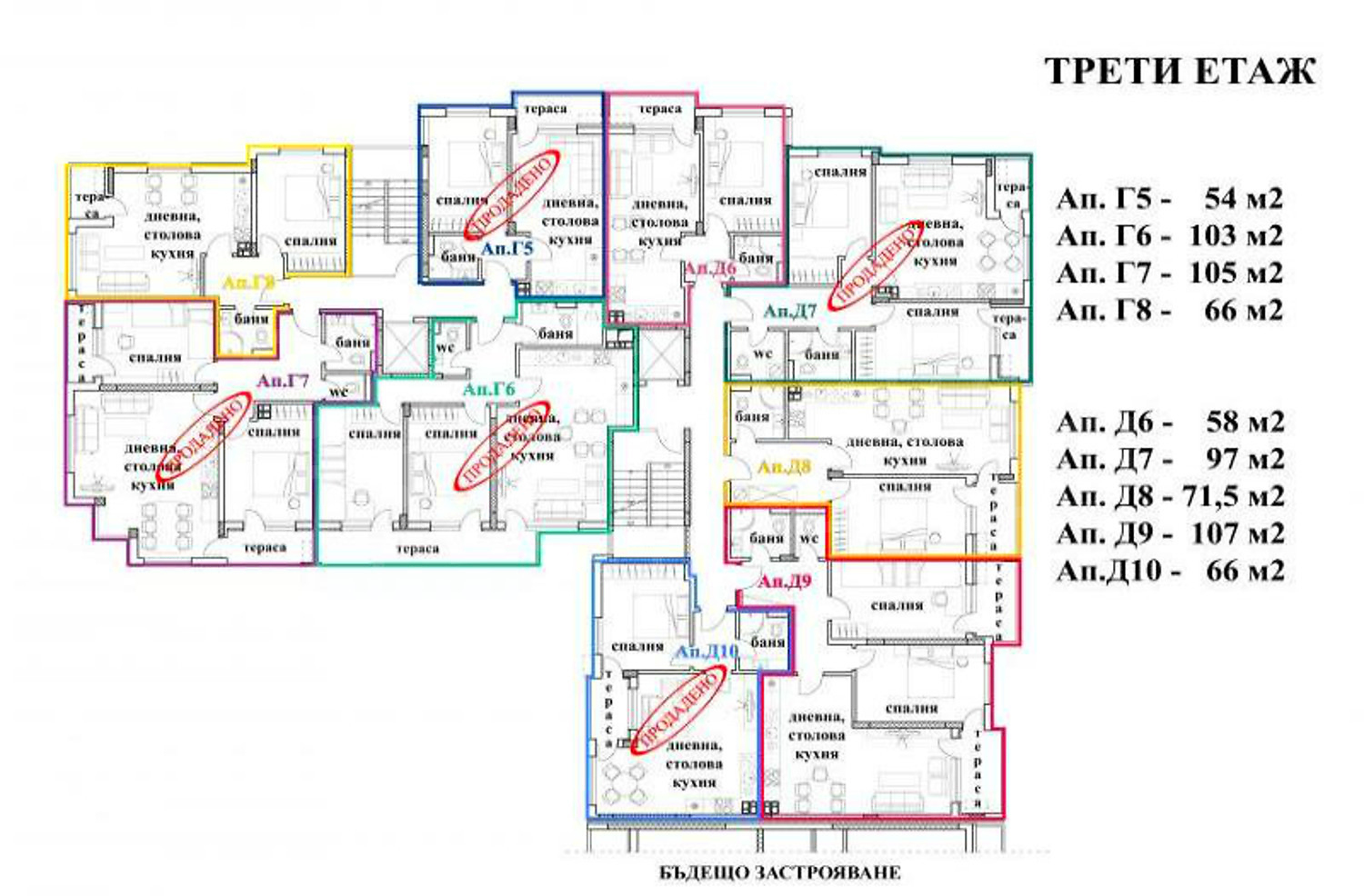 109.00 м2 (жилая площадь: 88.7 м2 плюс общие части: 20.30 м2) еще