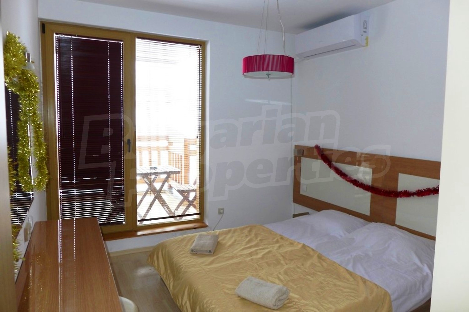 Двухкомнатная квартира площадью 62.36 м2. Предлагаемая недвижимость построена в 2006. Камин, отопление кондиционером и отопление на электрических радиаторах. Обеспечено кондиционирование следующего типа: стандартные кондиционеры. Внешняя изоляция, ламинированный пол, межкомнатные двери, окна пвх, стены покрашенные латексной краской и терракотовый пол имеются в предлагаемой недвижимости. Недвижимость включает следующую мебель и оборудование: ванна, вытяжка, духовка, кондиционер, мебель, оборудованная ванная комната, телевизор и холодильник. Из основных коммуникаций обеспечены электричество, вода и канализация. Ванная комната с туалетом, парковка вне дороги, стоянка, терраса, комплекс закрытого типа, лифт, заасфальтированная дорога, интернет, кабельное телевидение и телефон имеются в наличии среди прочих обозначенных характеристик предлагаемого объекта, что обеспечит дополнительный комфорт для пользования. Виды на внутренний двор и виды на горы открываются с недвижимости, раскрывая часть красот живописной Болгарии.
