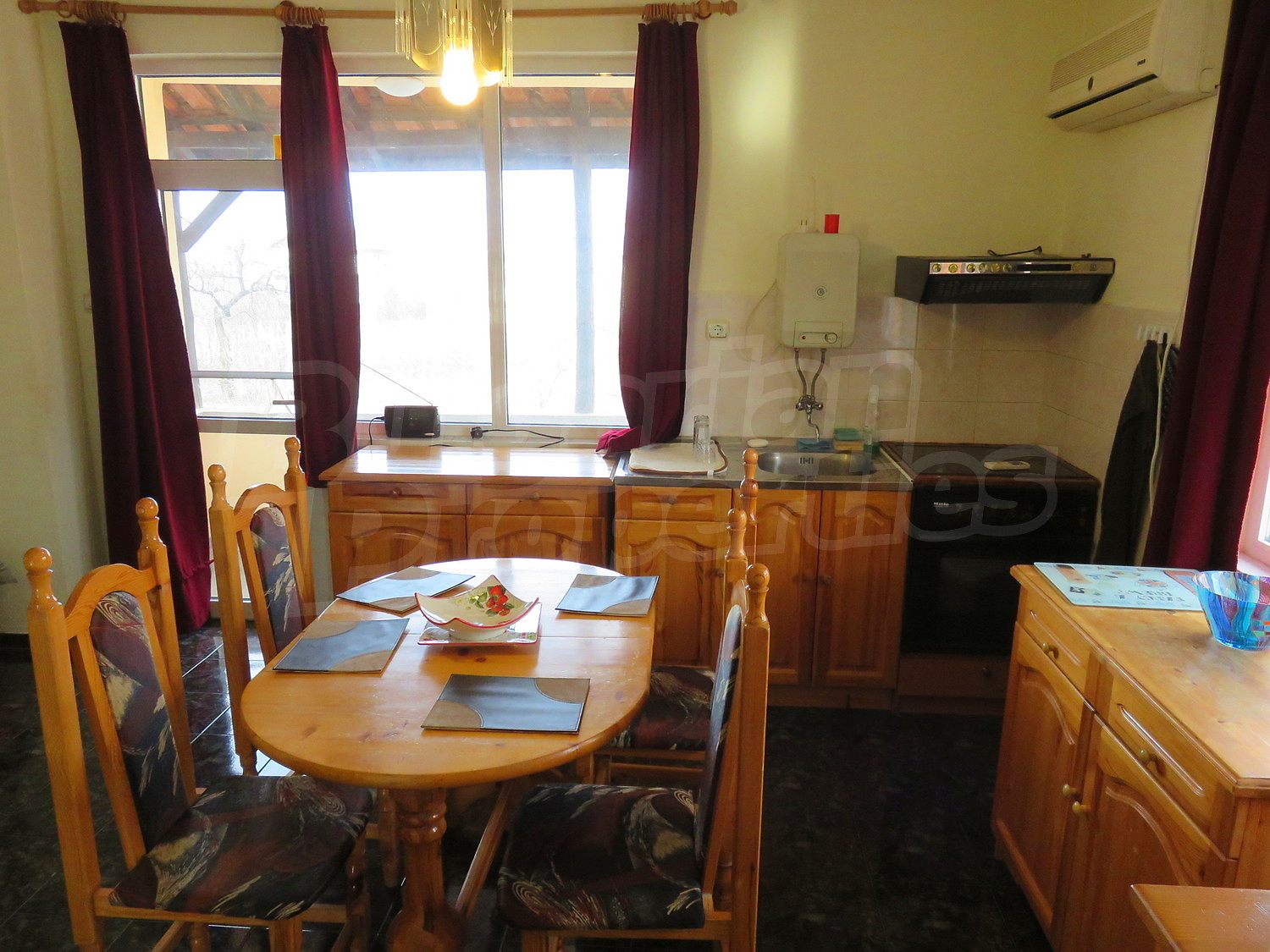 Дом площадью 60 кв.м. Предлагаемая недвижимость построена в 1980. Камин и отопление кондиционером. Обеспечено кондиционирование следующего типа: стандартные кондиционеры. Окна пвх, стены покрашенные латексной краской и терракотовый пол имеются в предлагаемой недвижимости. Недвижимость включает следующую меблировку и оснащение: бойлер электрический, вытяжка, духовка, кондиционер, меблировку, оборудованная ванная комната, стиральная машина и холодильник. Из основных коммуникаций обеспечены электричество, вода и септическая яма. Веранда, внутренний туалет, внутренняя ванная, парковка вне дороги, терраса и заасфальтированная дорога имеются в наличии среди прочих упомянутых характеристик предлагаемого объекта, что обеспечит дополнительные удобства для пользования. Виды на внутренний двор открываются с недвижимости, раскрывая часть красот живописной Болгарии.