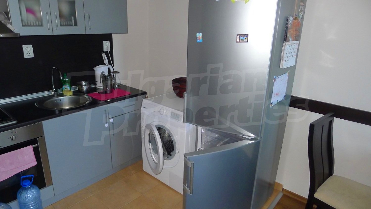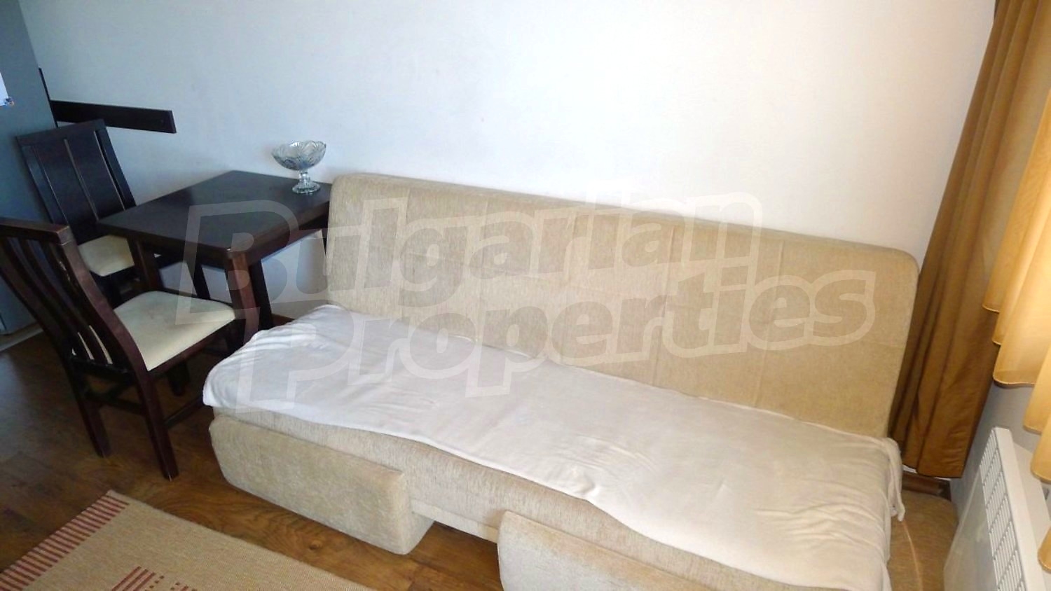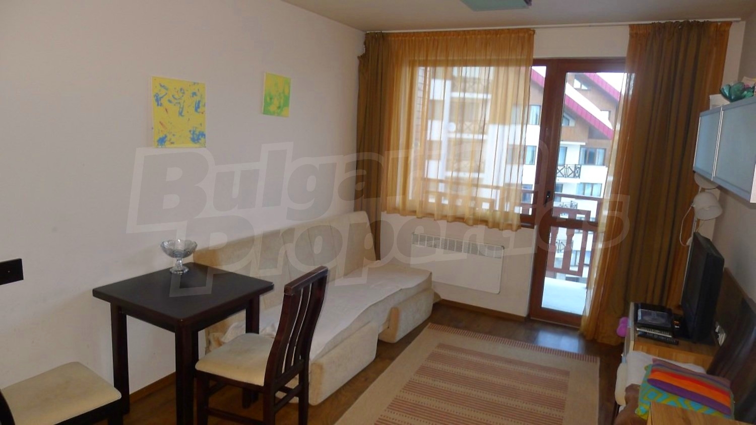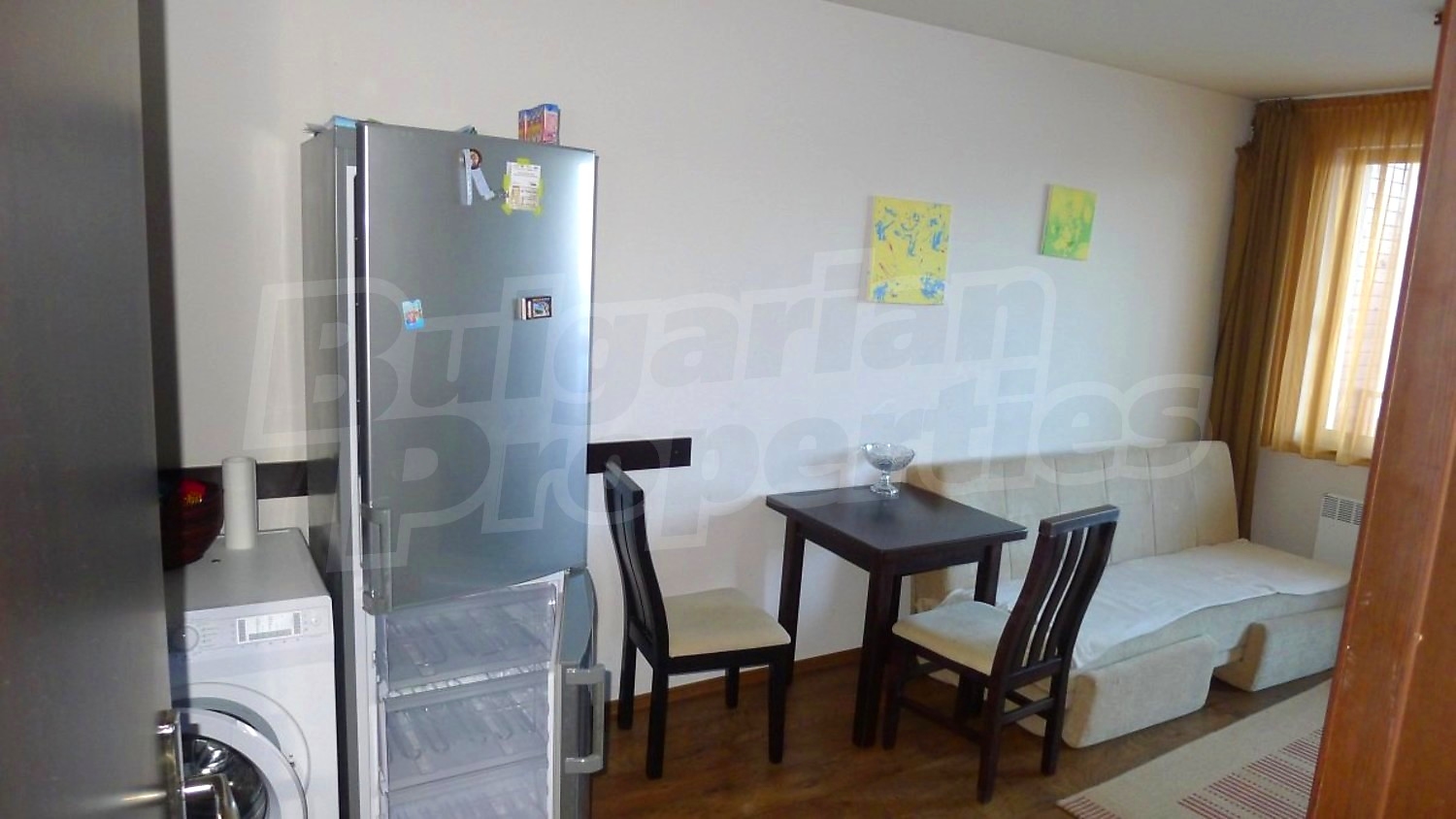 Двухкомнатная квартира площадью 60.14 кв. метров. Отопление на электрических радиаторах и отопление на электроконвекторах. Внешняя изоляция, ламинированный пол, межкомнатные двери, окна пвх, стены покрашенные латексной краской и терракотовый пол имеются в предлагаемой недвижимости. Недвижимость включает следующую мебель и оснащение: бойлер электрический, вытяжка, духовка, душевая, мебель, оборудованная ванная комната, стиральная машина, телевизор и холодильник. Из основных коммуникаций обеспечены электричество, центральное водоснабжение и центральная канализация. Ванная комната с туалетом, парковка вне дороги, стоянка, терраса, бассейн, джакузи, комплекс закрытого типа, консьерж, лифт, общие части с отделкой люкс, сауна, тренажерный зал, заасфальтированная дорога, интернет, интернет Wi-Fi и кабельное телевидение имеются в наличии среди прочих перечисленных характеристик предлагаемого объекта, что обеспечит дополнительные удобства для пользования. Виды на внутренний двор и виды на лес открываются с недвижимости, раскрывая часть красот живописной Болгарии.