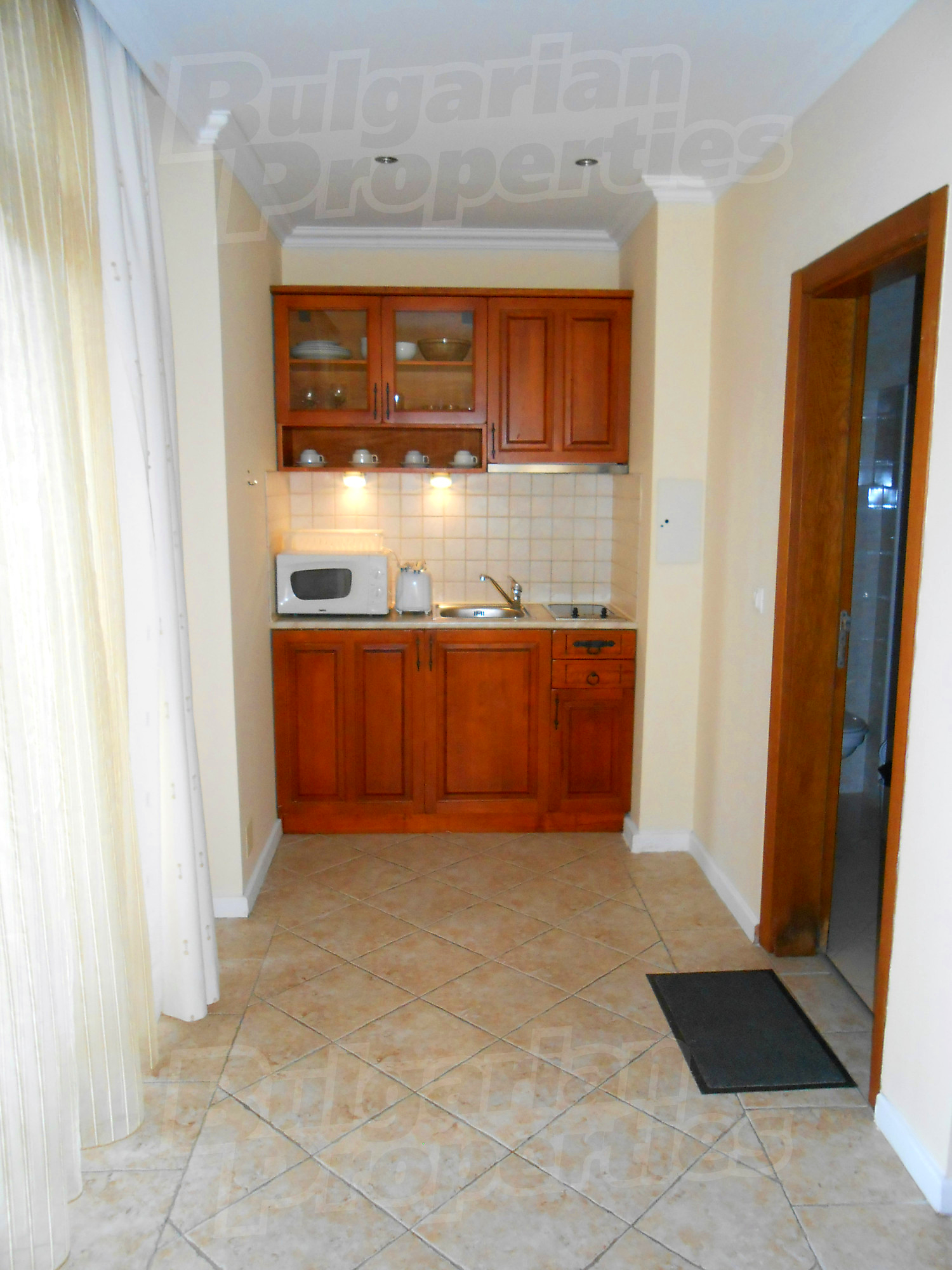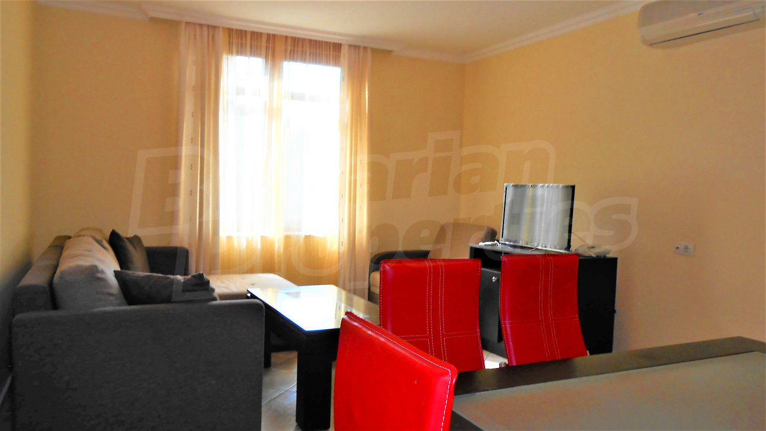 Двухкомнатная квартира площадью 96.48 кв.м. Предлагаемая недвижимость построена в 2007. Отопление кондиционером. Обеспечено кондиционирование следующего типа: стандартные кондиционеры. Алюминиевые окна, межкомнатные двери, стены покрашенные латексной краской и терракотовый пол имеются в предлагаемой недвижимости. Недвижимость включает следующую мебель и оборудование: вытяжка, мебель и оборудованная ванная комната. Из основных коммуникаций обеспечены электричество и центральное водоснабжение. Ванная комната с туалетом, терраса, интернет и кабельное телевидение имеются в наличии среди прочих характеристик предлагаемого объекта, что обеспечит дополнительный комфорт для пользования. Виды на внутренний двор открываются с недвижимости, раскрывая часть красот живописной Болгарии.