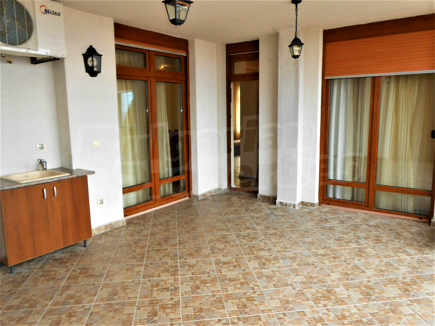 Двухкомнатная квартира площадью 96.48 кв.м. Предлагаемая недвижимость построена в 2007. Отопление кондиционером. Обеспечено кондиционирование следующего типа: стандартные кондиционеры. Алюминиевые окна, межкомнатные двери, стены покрашенные латексной краской и терракотовый пол имеются в предлагаемой недвижимости. Недвижимость включает следующую мебель и оборудование: вытяжка, мебель и оборудованная ванная комната. Из основных коммуникаций обеспечены электричество и центральное водоснабжение. Ванная комната с туалетом, терраса, интернет и кабельное телевидение имеются в наличии среди прочих характеристик предлагаемого объекта, что обеспечит дополнительный комфорт для пользования. Виды на внутренний двор открываются с недвижимости, раскрывая часть красот живописной Болгарии.