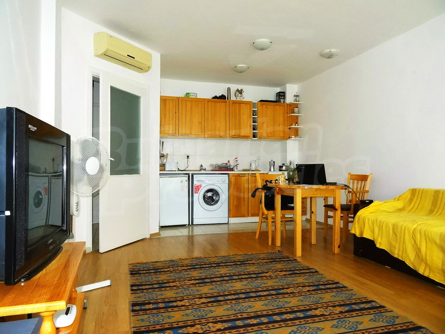 Двухкомнатная квартира площадью 60 кв. метров. Предлагаемая недвижимость построена в 2007. Отопление кондиционером. Ламинированный пол, окна пвх и терракотовый пол имеются в предлагаемой недвижимости. Недвижимость включает следующую мебель и оснащение: встроенная кухня, духовка, кондиционер, мебель, оборудованная ванная комната, стиральная машина, телевизор и холодильник. Из основных коммуникаций обеспечены электричество, центральное водоснабжение и центральная канализация. Ванная комната с туалетом, терраса, бассейн, комплекс закрытого типа, консьерж, общие части с отделкой люкс, заасфальтированная дорога, интернет, кабельное телевидение и телефон имеются в наличии среди прочих отличительных характеристик предлагаемого объекта, что обеспечит дополнительные удобства для пользования. Виды на море открываются с недвижимости, раскрывая часть красот живописной Болгарии.