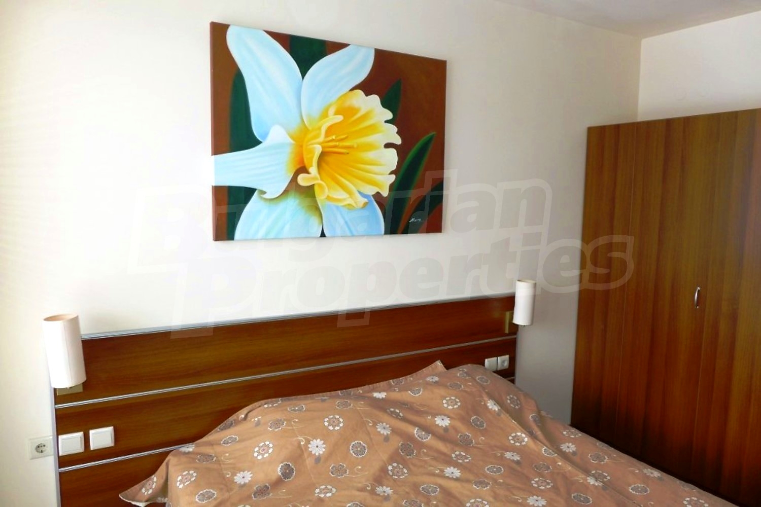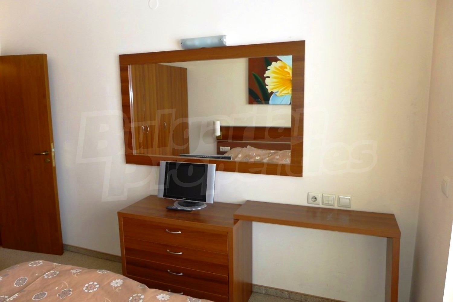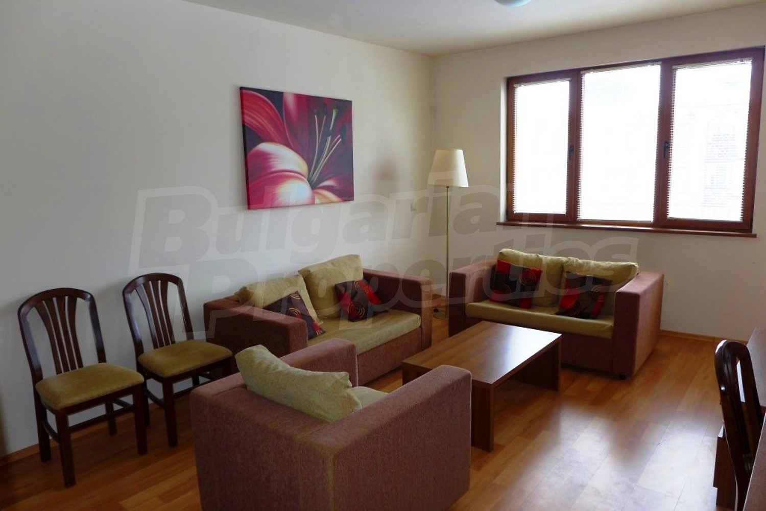 Двухкомнатная квартира площадью 66 кв.м. Предлагаемая недвижимость построена в 2008. Отопление на электрических радиаторах. Ламинированный пол, межкомнатные двери, окна пвх, стены покрашенные латексной краской и терракотовый пол имеются в предлагаемой недвижимости. Недвижимость включает следующую меблировку и оснащение: ванна, встроенная кухня, вытяжка, духовка, душевая, меблировку, оборудованная ванная комната, телевизор и холодильник. Из основных коммуникаций обеспечены электричество, вода и центральная канализация. Внутренний туалет, внутренняя ванная, парковка вне дороги, терраса, бассейн, консьерж, лифт, общие части с отделкой люкс, сауна, тренажерный зал, заасфальтированная дорога, интернет, интернет Wi-Fi и кабельное телевидение имеются в наличии среди прочих обозначенных характеристик предлагаемого объекта, что обеспечит дополнительные удобства для пользования. Виды на внутренний двор открываются с недвижимости, раскрывая часть красот живописной Болгарии.