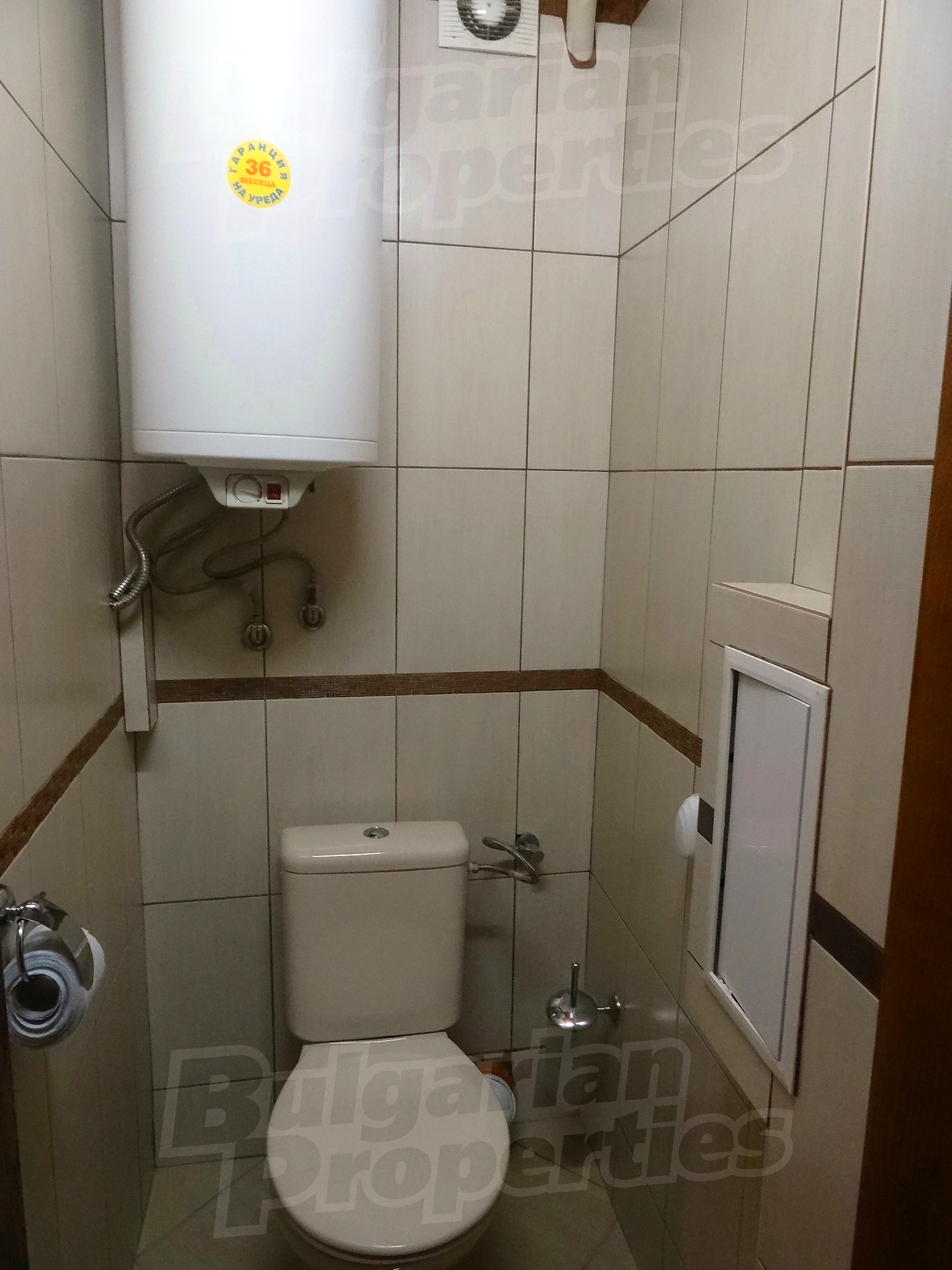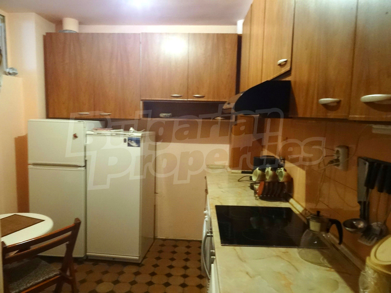 Трехкомнатная квартира площадью 85 м2. Отопление кондиционером. Ламинированный пол, окна пвх, паркетный пол, покрашенные стены и терракотовый пол имеются в предлагаемой недвижимости. Недвижимость включает следующую мебель и оснащение: бойлер электрический, вытяжка, духовка, душевая, кондиционер, мебель, оборудованная ванная комната и холодильник. Из основных коммуникаций обеспечены электричество, вода и канализация. Ванная комната, подвал, терраса, туалет, интернет, кабельное телевидение и телефон имеются в наличии среди прочих упомянутых характеристик предлагаемого объекта, что обеспечит дополнительные удобства для пользования. Виды на населенный пункт открываются с недвижимости, раскрывая часть красот живописной Болгарии.