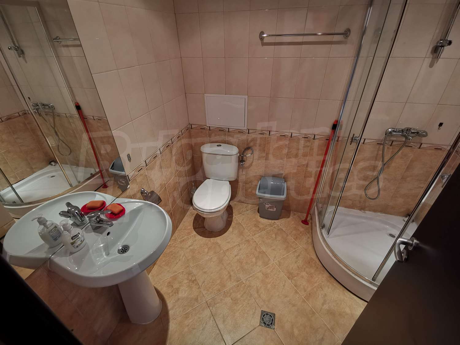 • Ванная комната с туалетом, душем, стиральной машиной и бойлером;