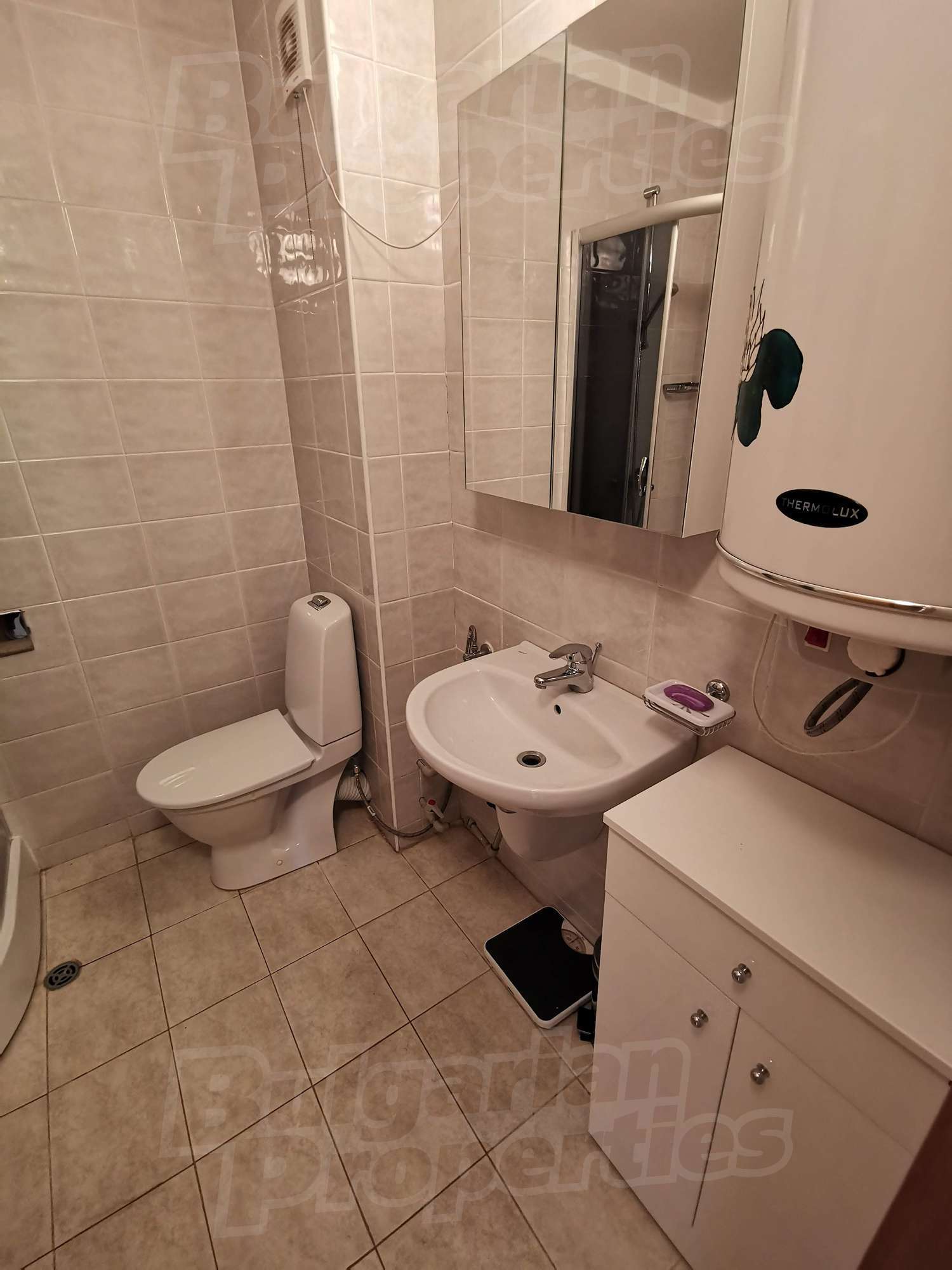 Квартира с кондиционером, отделана ламинатом и терракотой, окна ПВХ. Ежегодная плата за обслуживание составляет 500 евро.