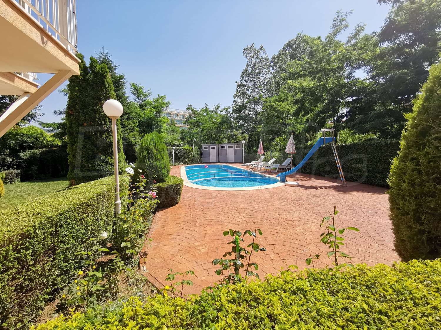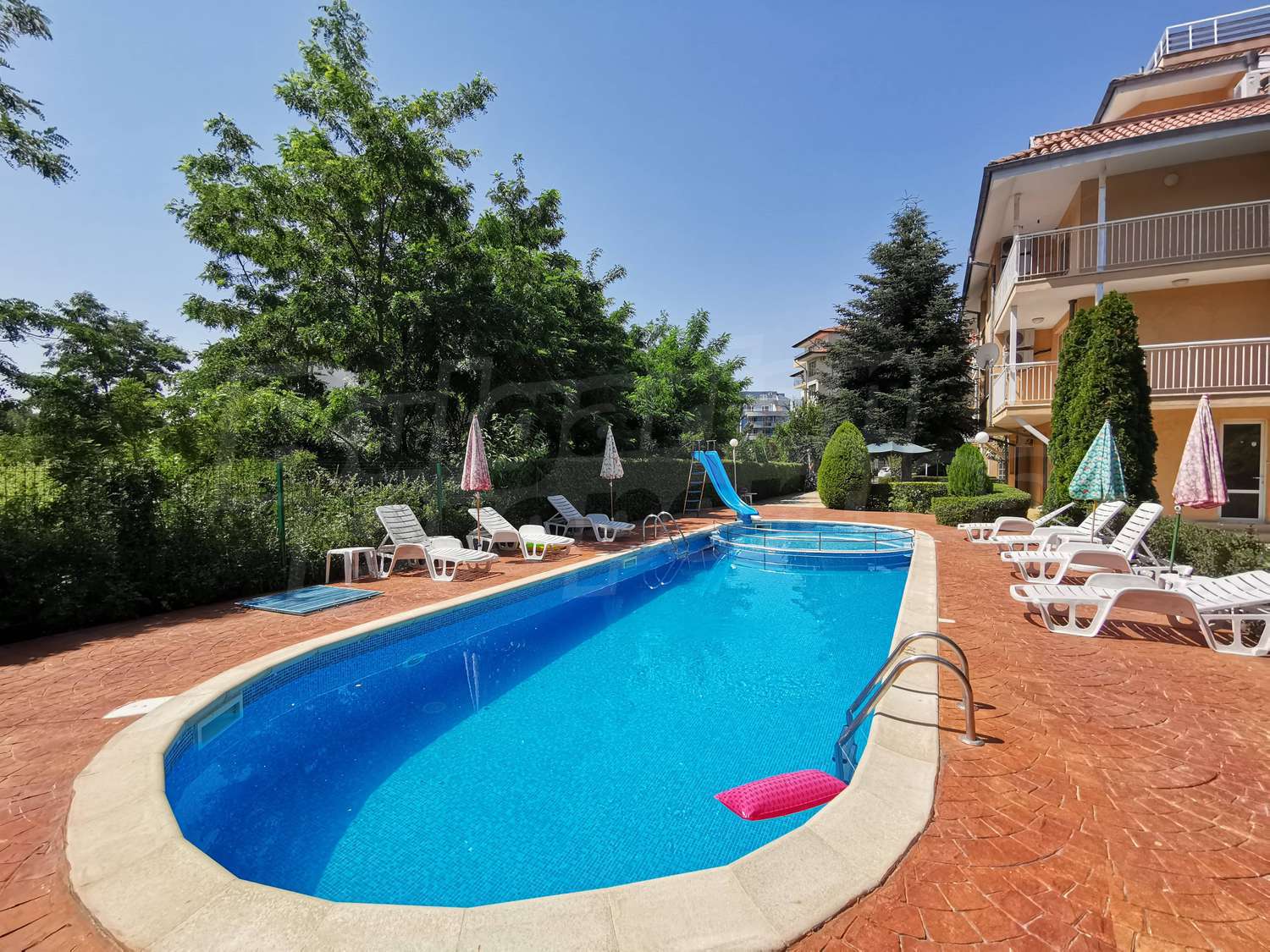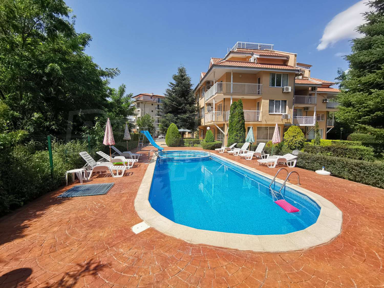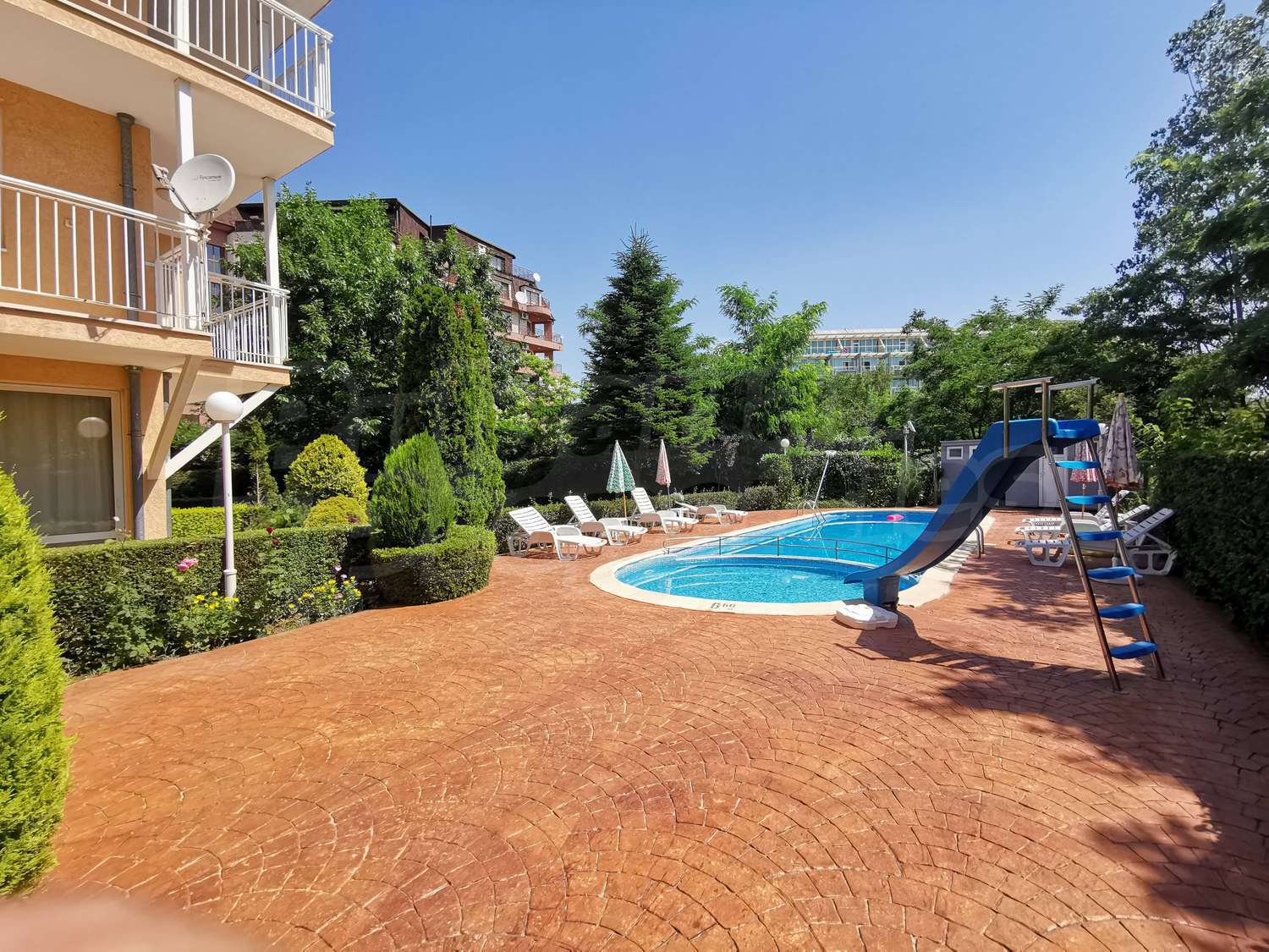 Здание находится в тихом месте за отелем „Фламинго“, рядом с „Ивана Палас“, всего в 300 метрах от пляжа, в 400 метрах от центра курорта со всеми современными удобствами и всего в 100 метрах от автобусной остановки.