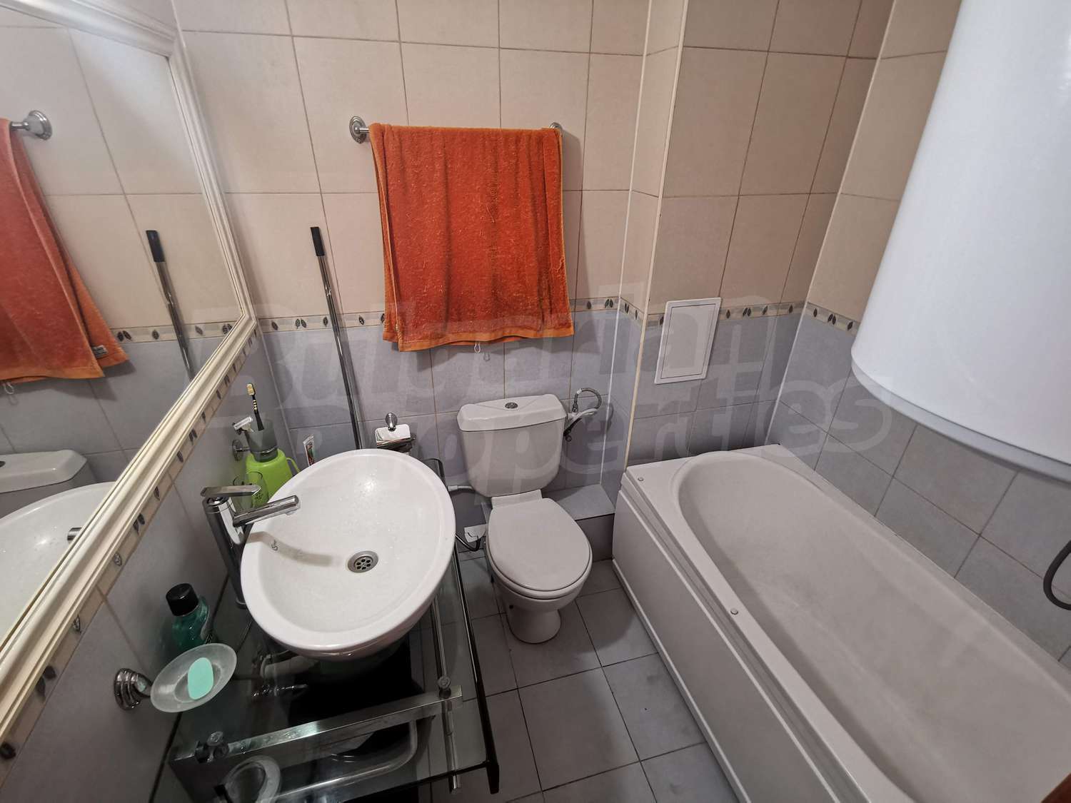 • ванная комната с туалетом, ванной и бойлером