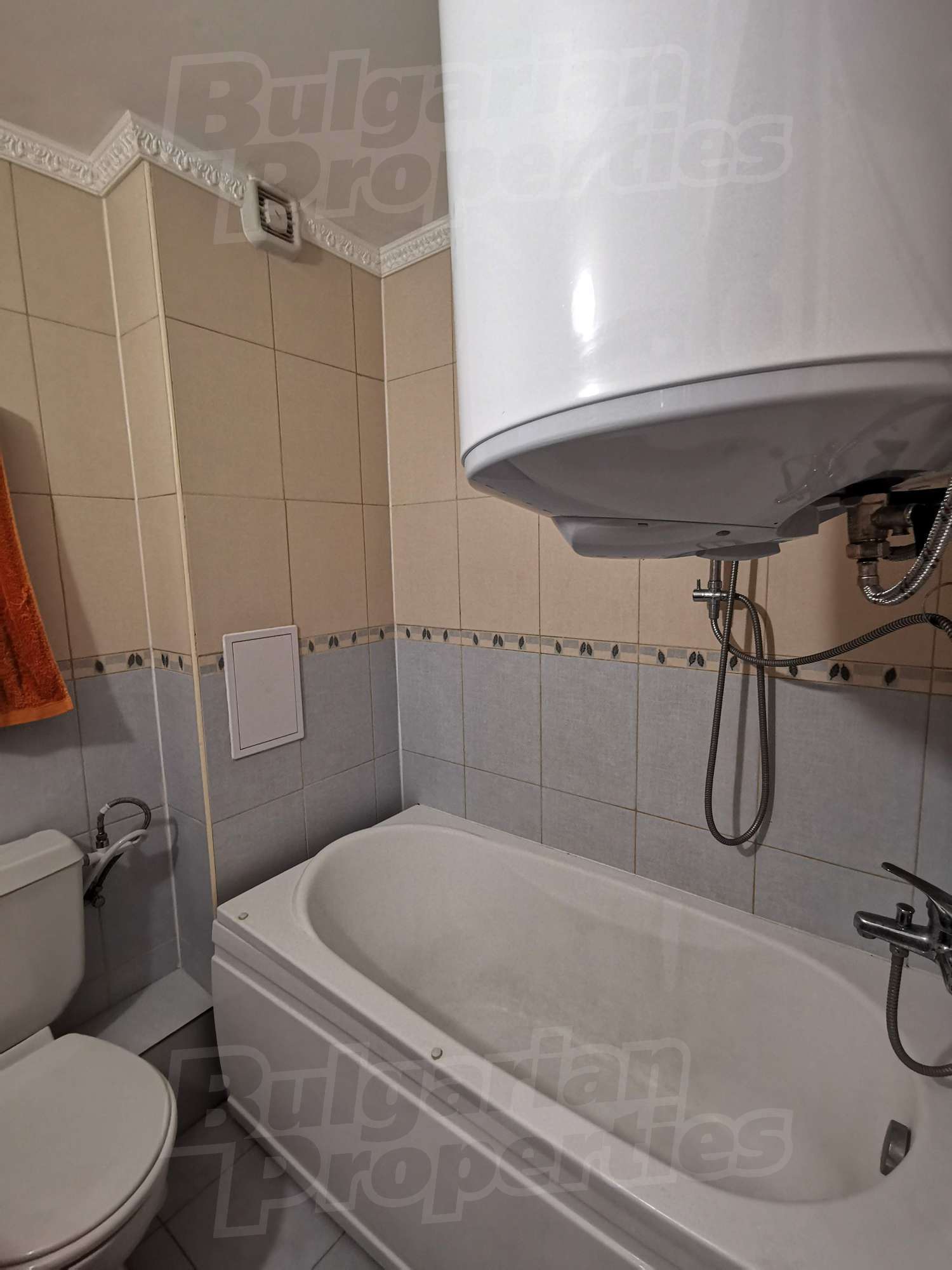 • ванная комната с туалетом, ванной и бойлером