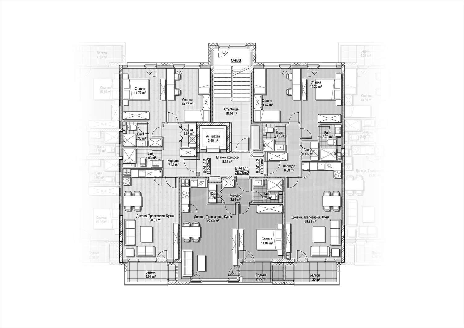 Квартиры - 159 квартир, распределенных по пяти подъездам. Квартиры отличаются функциональными и светлыми пространствами с индивидуальным характером для полноценной жизни в оживленном городе.