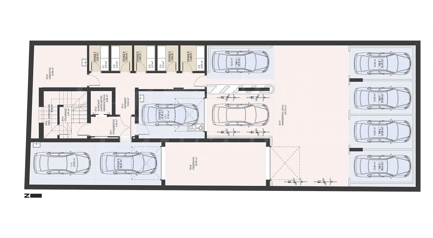 Возможность приобрести подземное парковочное место 49 500 € или гараж 77 000 €.