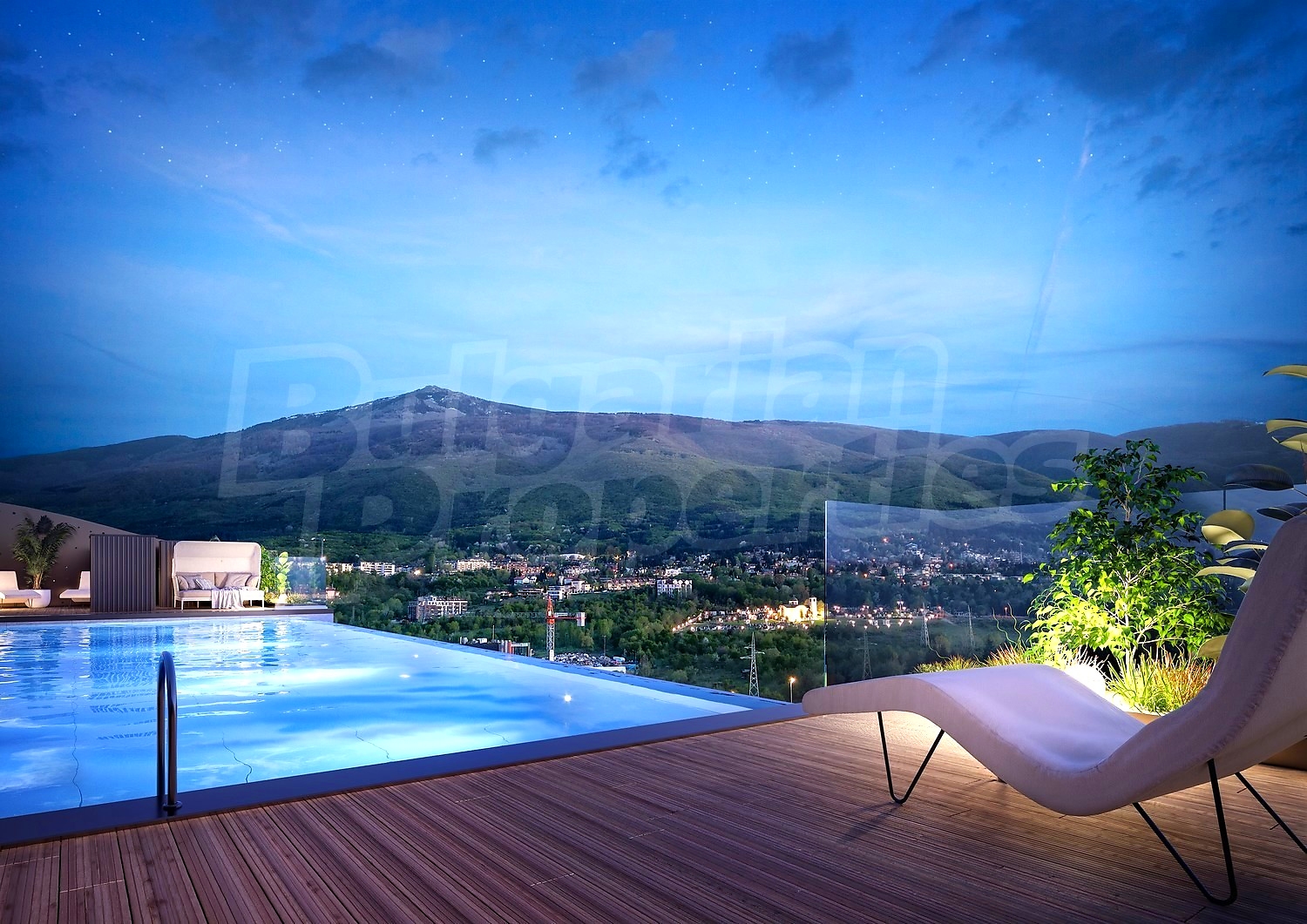 - Панорамные стеклянные фасады с 360° видами на город и Витошу