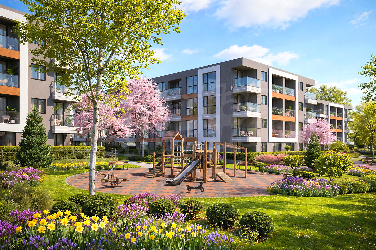 Объект строится в районе с ограниченными градостроительными параметрами - малоэтажная застройка до 4 этажей, новая инфраструктура. Комплекс состоит из 8 зданий, с 1 подъездом на здание, каждое по 4 этажа, расположенных на участке 15053 кв.м., с богатым ландшафтным дизайном, аллеями, зонами отдыха, детскими и спортивными площадками, местом и средой для спокойной жизни в гармонии с природой у подножия Витоши.
