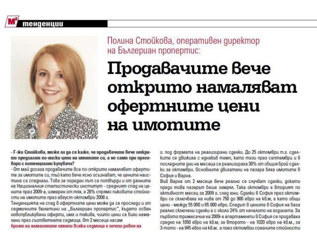 Полина Стойкова, оперативный директор компании БОЛГАРИАН ПРОПЕРТИС, о состоянии рынка недвижимости: