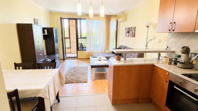 Двухкомнатная квартира в районе Лазур, в нескольких минутах от Морского сада г. Бургас , кв. «Лазур» Просторная, полностью меблированная квартира в одном из самых престижных районов Бургаса Предлагаем на продажу просторную двухкомнатную квартиру площадью 76.76 кв.м, расположенную в престижном районе Лазур в Бургас, в пешей доступности от Морского сада и центра города. Квартира находится на 4 этаже из 6, с ориентацией восток/запад: • гостиная с кухней • спальня