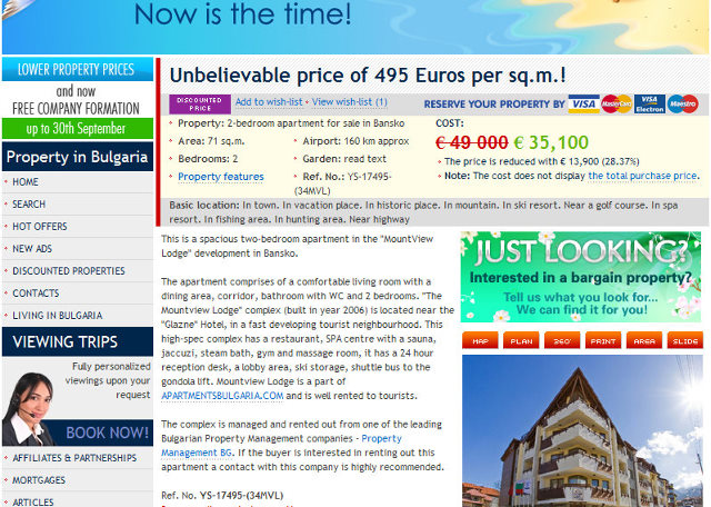 • Лыжный курорт Банско - – лидер по показателю снижения цен на недвижимость, в среднем учитывается снижение составляющее 25%;