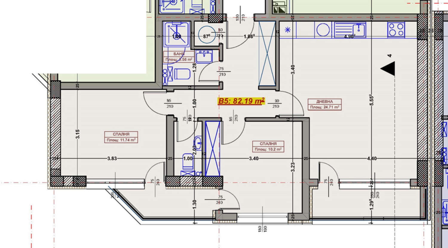 Трехкомнатная квартира в Новый жилой дом в престижном районе Возраждане 1 г. Варна , кв. «Вызраждане 1»